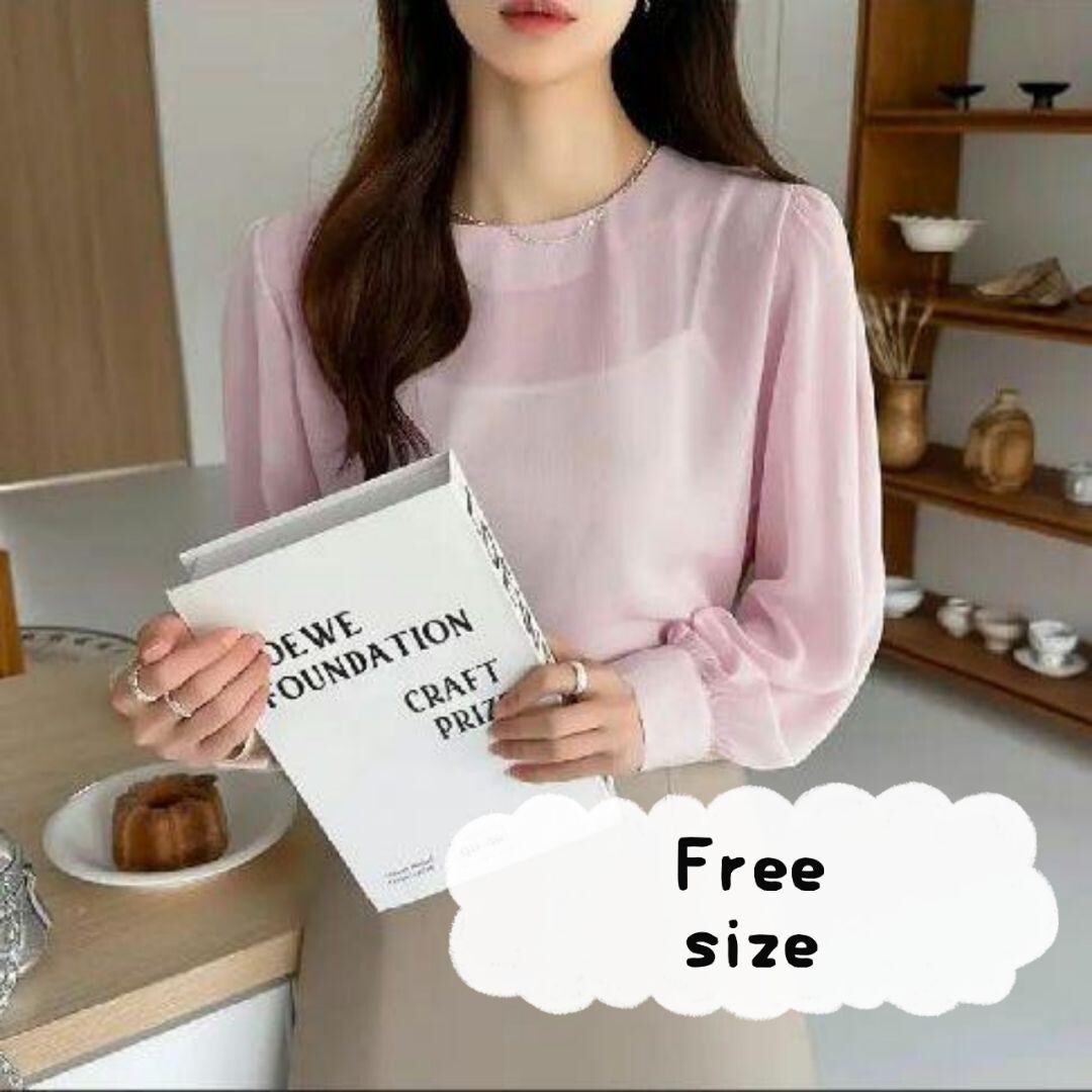 > シアーブラウス キャミソール セット 【Free size】 ピンク 長袖 春 オフィス フォーマル きれいめカジュアル
