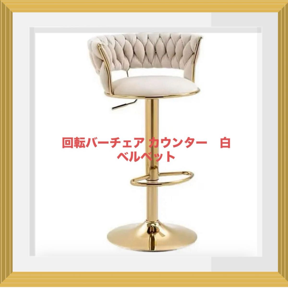 - 背もたれ椅子 回転バーチェア カウンター 白 ベルベット