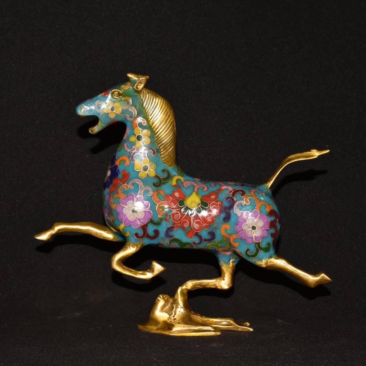 - 【仁】『銅製・景泰藍・琺瑯彩・塗金・馬踏飛燕・置物・賞物』極細工 古董品 中国古玩 古美術 古美味 時代物 旧家蔵出