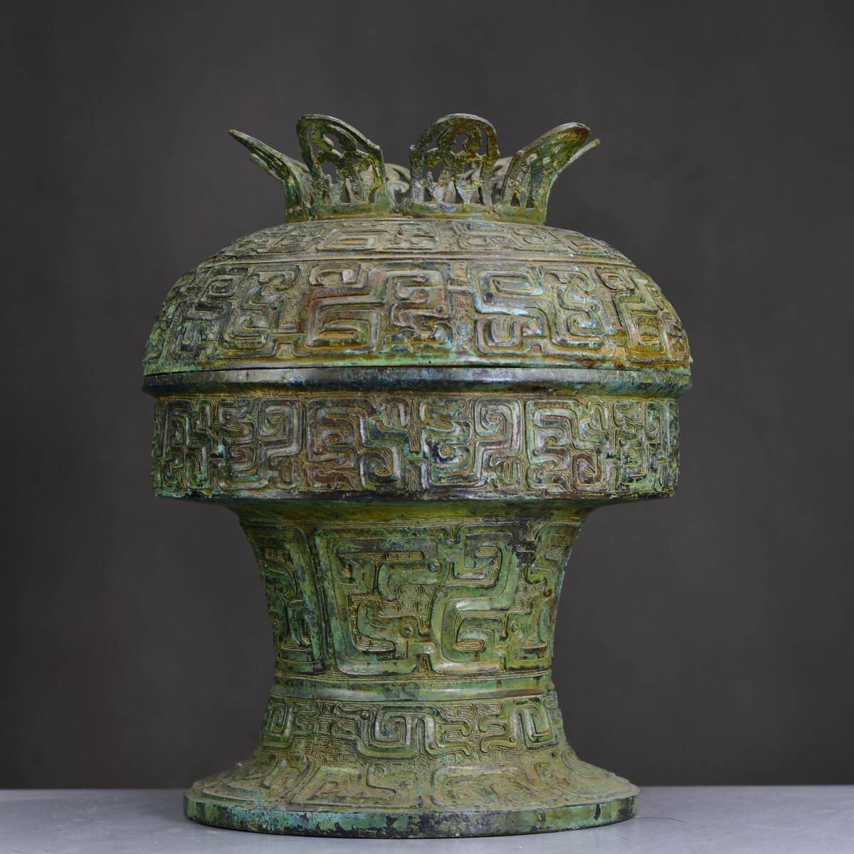 - 青銅器 旧蔵 商周時代 青銅蓮華丸豆、 酒器,尊,鼎,銅製 唐物 收蔵品 時代物 古美術 古置物 希少珍品 供養品 文房具 極細工6.11
