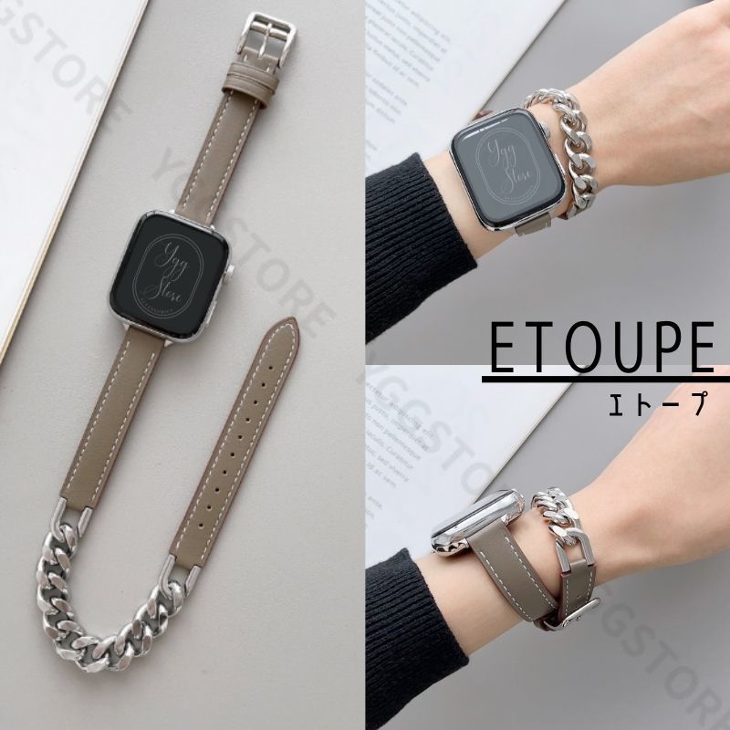 - アップルウォッチ チェーン レザー バンド ダブル 多重 二重巻き Apple Watch グルメット ステンレス 本革 44mm 45mm 46mm 49mm エトープ