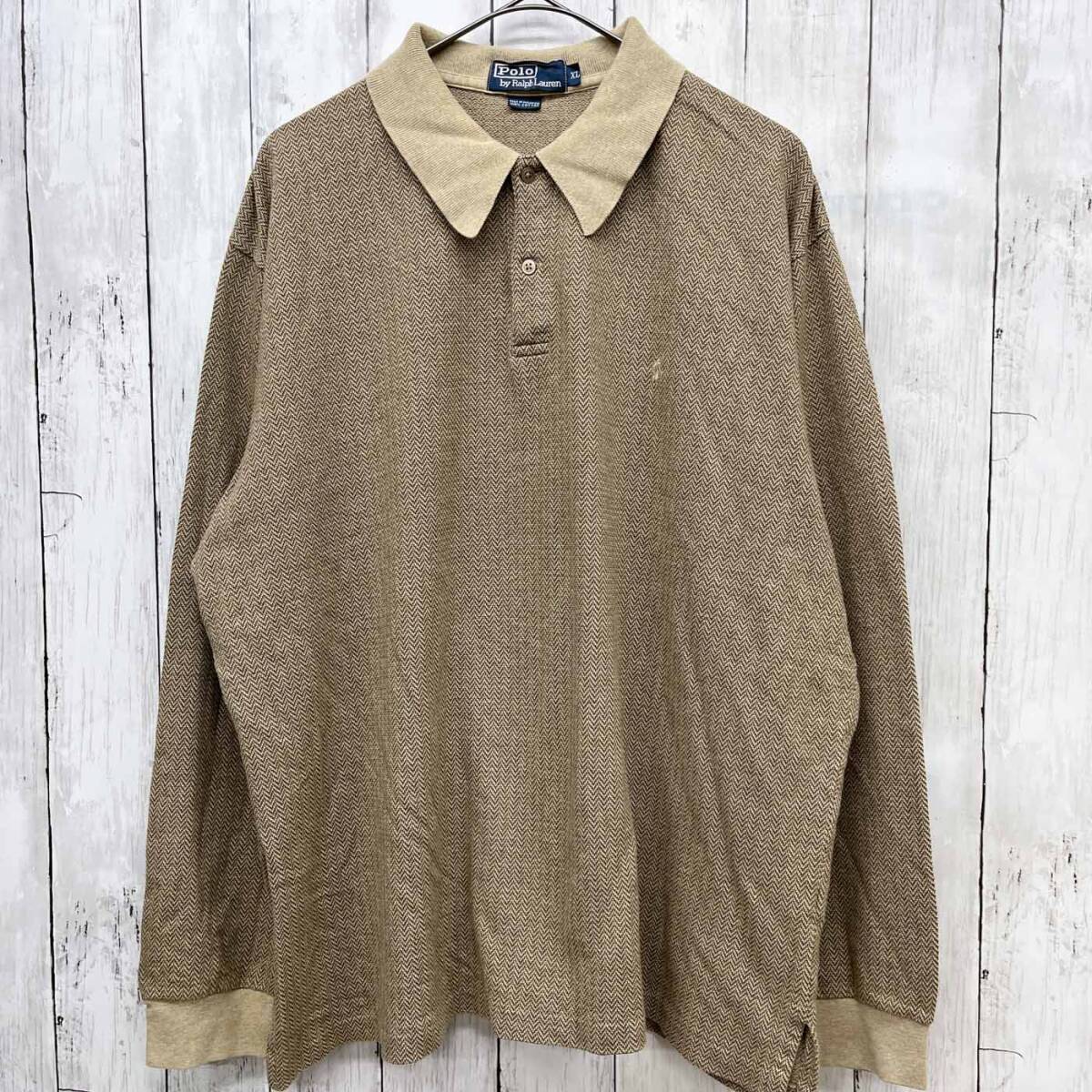 - ラルフローレン Ralph Lauren 長袖ポロシャツ メンズ ワンポイント ヘリンボーン柄 コットン100% XLサイズ 6-357