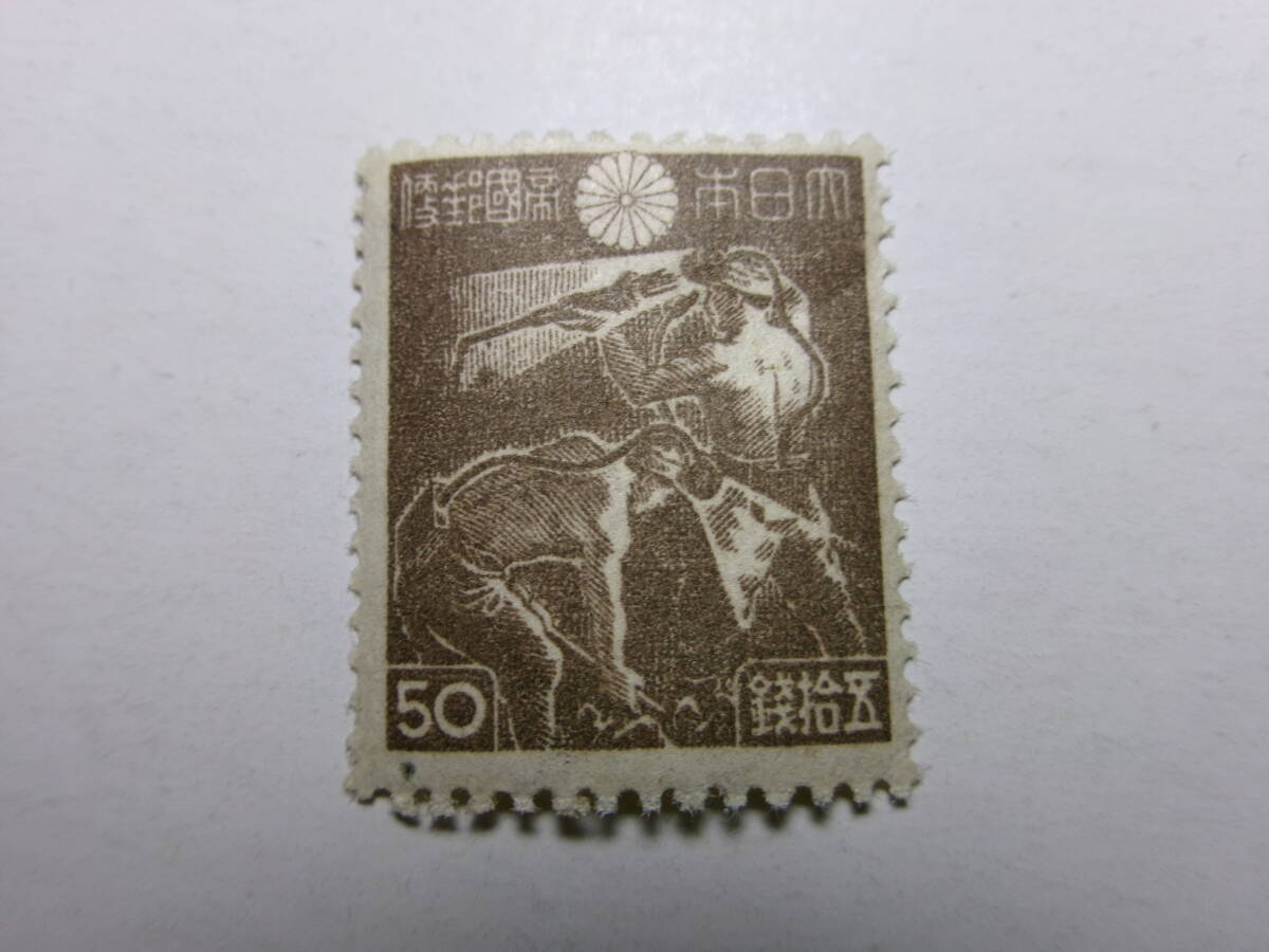 - 2次新昭和切手 炭坑夫 50銭 灰白紙 未使用