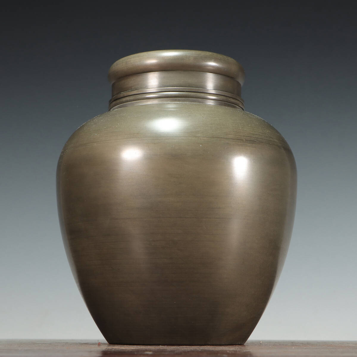 - 古錫 茶葉罐 蔵六居造 「錫製無紋茶心壺」 茶筒 茶入 茶壷 茶道具 錫肌 金工 茶器 時代物 重さ866g LT-250672