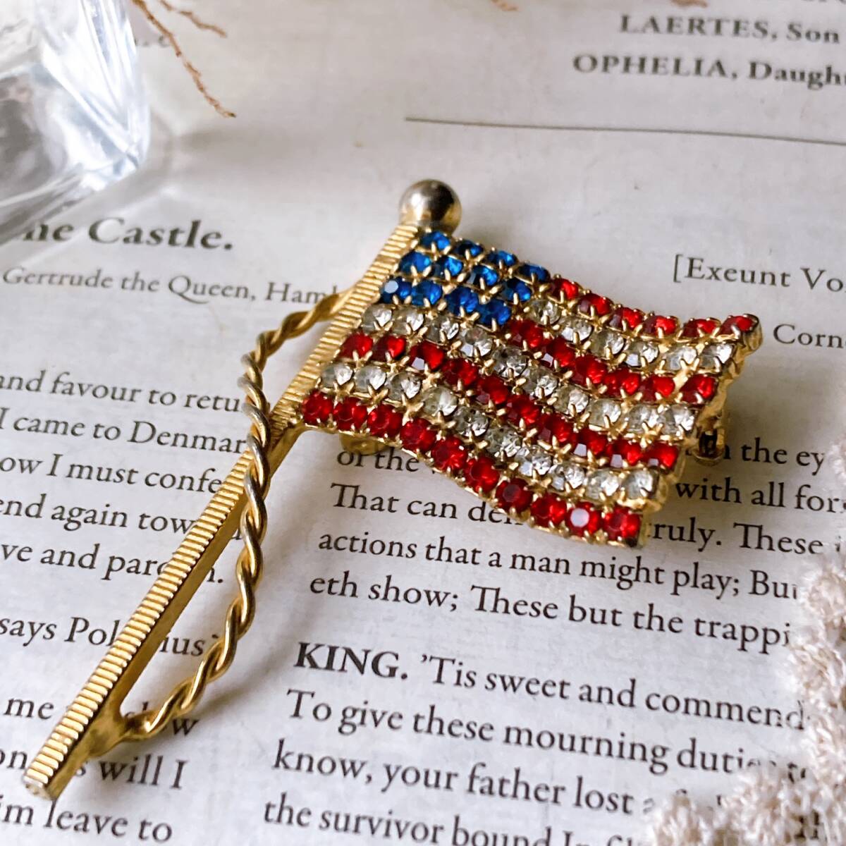 > アンティークブローチ ラインストーン USA 星条旗 ゴールドトーン ヴィンテージ 美品☆vintage jewelry accessoriesR0571