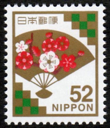 15109G5◆慶事用 扇52円 単★極美品 扇面と梅文様