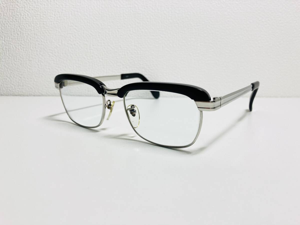 > 下◆貴重 FICM ブリッジ刻印 NCC ウェリントン型 サーモント ブロー シルバーxブラック ビンテージ 眼鏡 程度良品