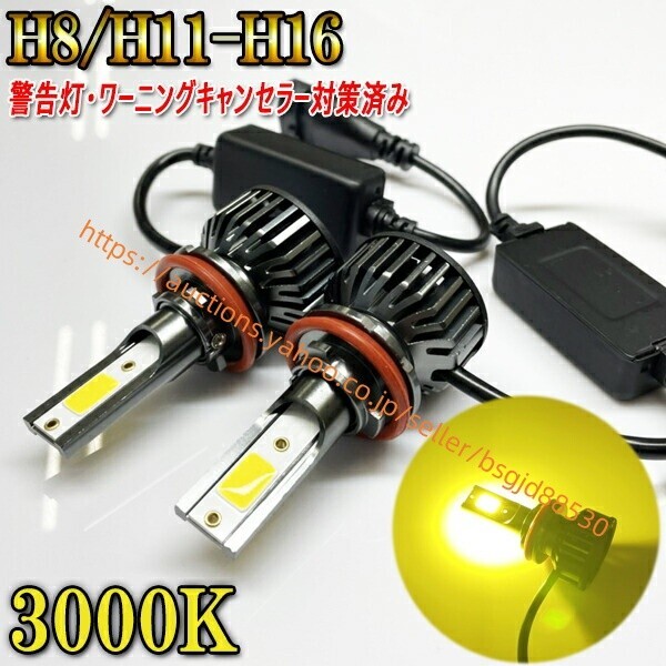 > フォグランプ LED H8 H11 H16 3000k イエロー ワーニングキャンセラー 内蔵 車検対応 2本セット 0000led-3700lm-3000k-h8h11h16