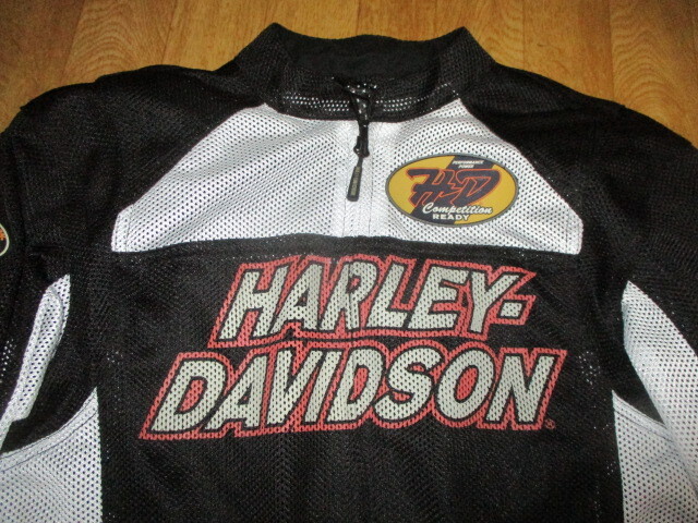 > ハーレーダビッドソン サイズS(M~L相当) ラバーワッペン多数付き デカロゴ・フルメッシュジャケット 極美中古