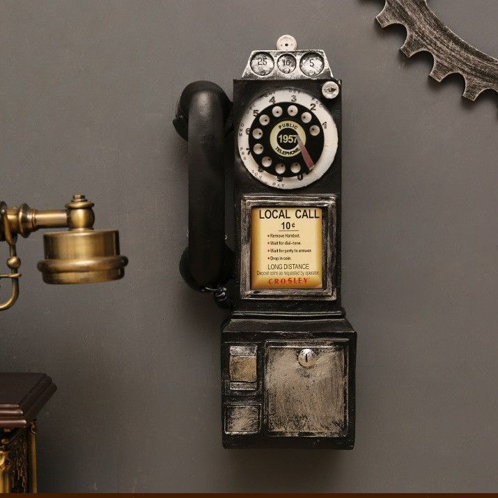 > レトロ 壁掛けダイヤル式公衆電話 オブジェ ブラック ヴィンテージ風 50年代 アメリカン 電話 インテリア 雑貨 懐かしい ノスタルジック 黒