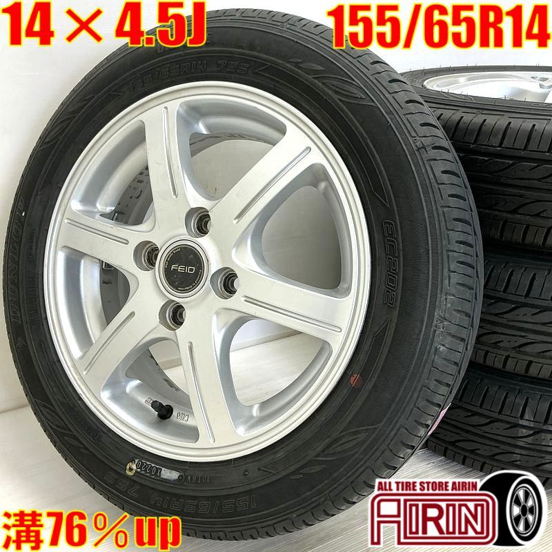 | 【中古】アルミホイール・タイヤ付 FEID DUNLOP ENASAVE EC202 155/65R14 4本セット