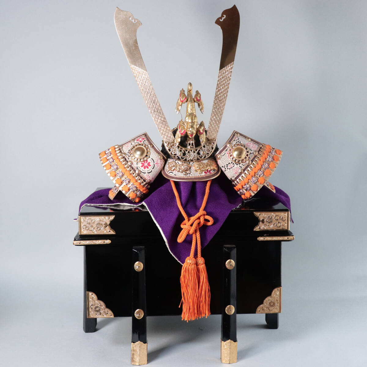 - 五月人形 兜飾り 龍前立て 金龍 昇り龍 鎧飾り 子供の日 節句飾り 彫金細工 飾り兜 鎧兜 戦国武将 将軍 F0607C6