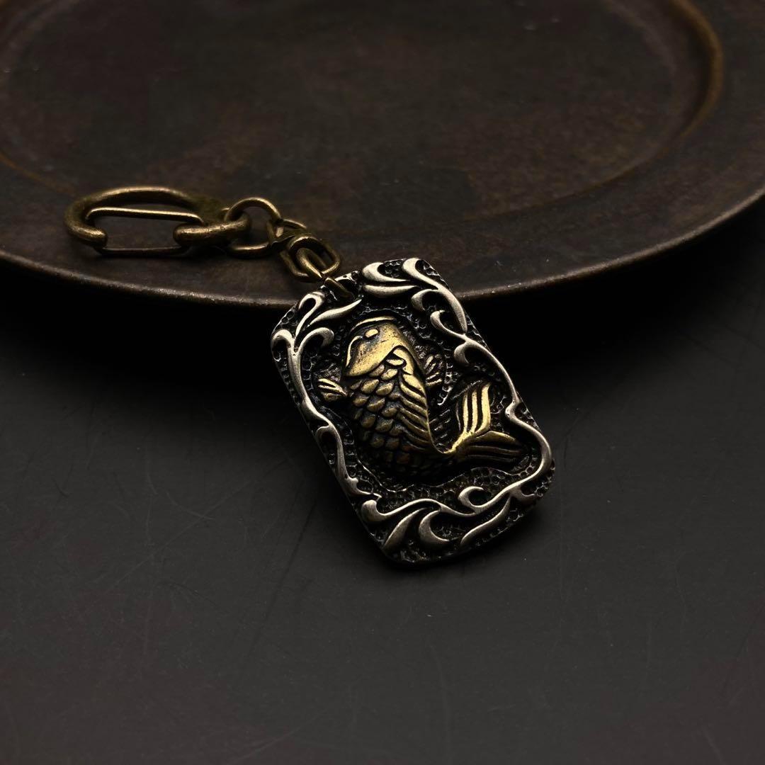 > 175 真鍮 キーホルダー 鯉 コイ 恋 ビンテージ 風水 金運 開運 レトロ アンティーク 真鍮製 チャーム アクセサリー パーツ ハンドメイド