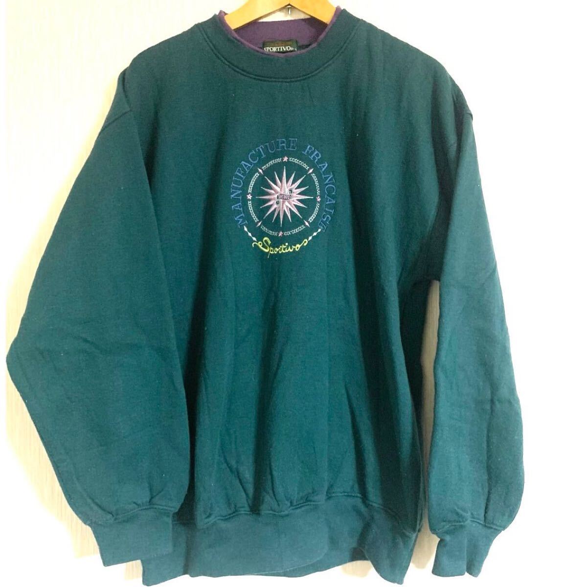 - オーバーサイズ裏起毛長袖トレーナー 刺しゅうスウェットプルオーバー グリーン青緑 アメカジ 防寒 秋冬