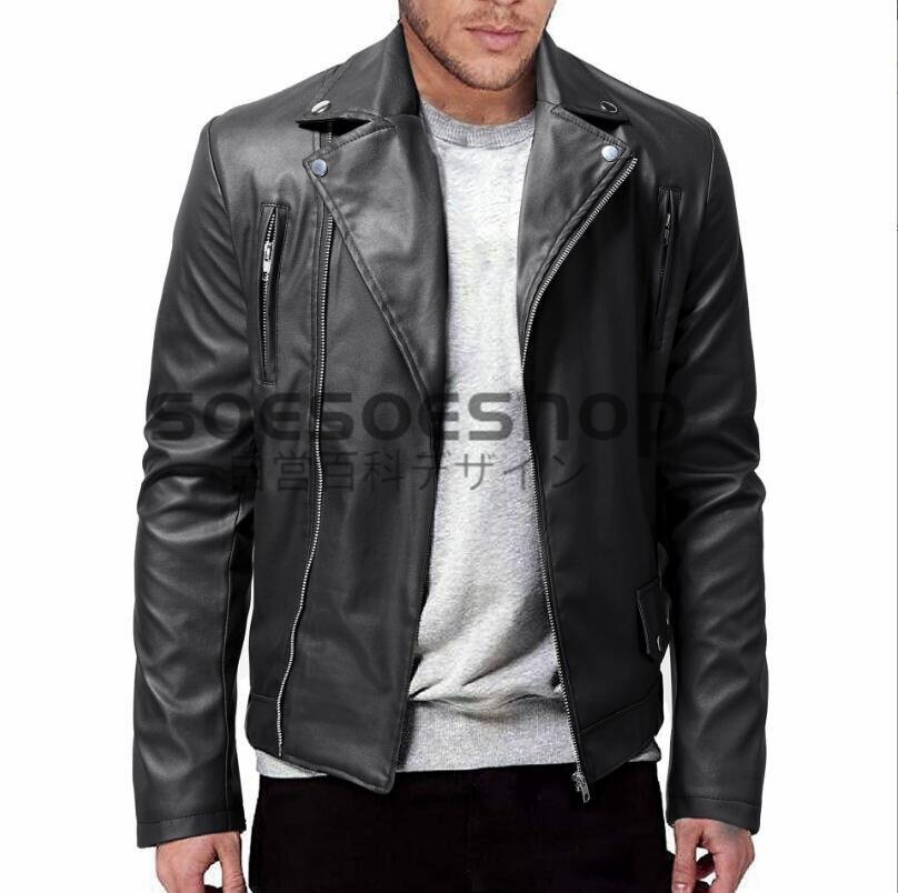 - 新品 ライダースジャケット バイクジャケット レザー メンズ 革ジャン ブルゾン アウター カジュアル M~5XL 黒