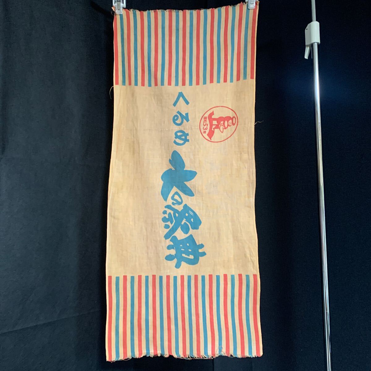- 柿渋染 手拭い 昭和53年 くるめ 水の祭典 てぬぐい 当時物 パッチワーク 生地 ハンドメイド 手芸 リメイク素材 アンティーク 古布 (A-2324)
