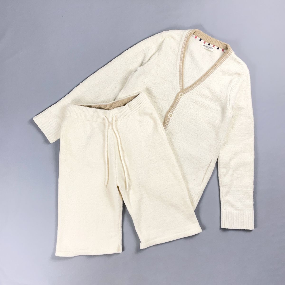 > 美品 Gelato Pique HOMME ジェラートピケ オム セットアップルームウェア カーディガン&ハーフパンツ メンズ ホワイト サイズM*CD893