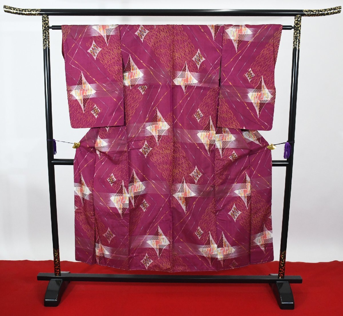 > 銘仙 アンティーク 三つ葉 幾何学模様 身丈145cm 裄丈61cm ★着物 pb-3505 桜庭呉服店