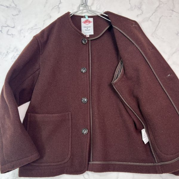 - 美品 ダントン ミドル丈 ウールモッサ ノーカラーコート ウール メンズ L相当 茶色 ブラウン系 DANTON B1008