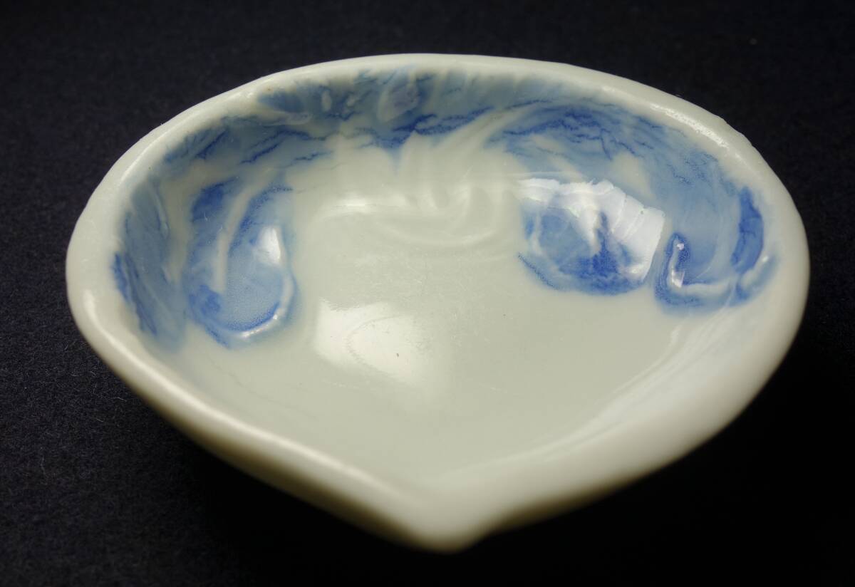 - 大正~昭和早期 寿桃形 カブ(縁起モノ) 小形茶豆皿 染付 陶磁器研究