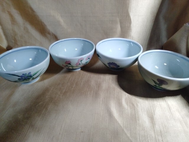 - 有田焼 稚祥 茶碗 小 4客 11x5.5cm 花たち 置103