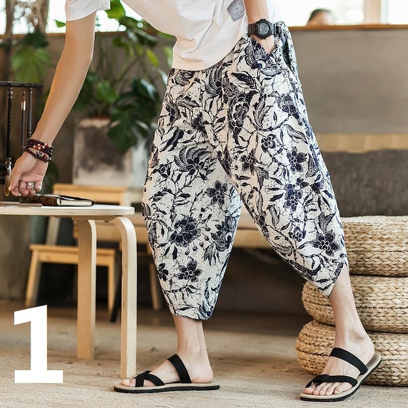 - 人気品大人気在庫処分サルエルパンツメンズ花柄ショートパンツ サマーパンツ 短パンハーフパンツビーチ ゆったり カジュアル M~5XL選択 柄1
