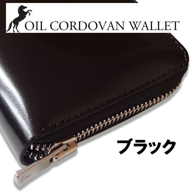 - ブラック 黒 新喜皮革 高級 オイルコードバン ラウンド長財布 日本製 416