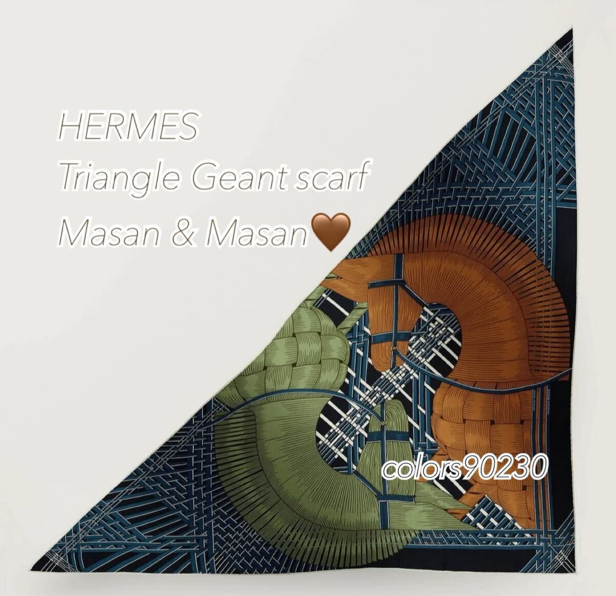 - 完売希少☆ エルメス トライアングルジェアン カシミヤシルク ストール スカーフ カレジェアン マサン&マサン Masan&Masan マリン 極美品