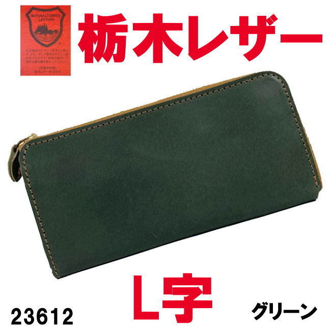 - グリーン 栃木レザー ベリー L字 長財布 23612 日本製 本革 メンズ レディース