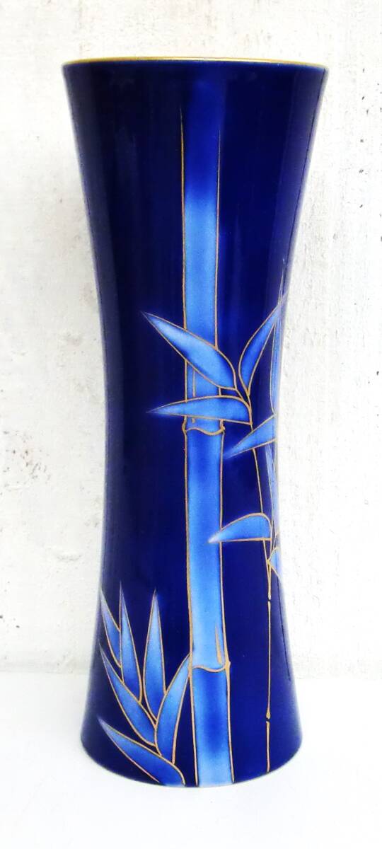 > *伝統工芸 工芸品 工芸美術 *美術有田焼 深川製磁 深川製 *花瓶 花入 花生 フラワーベース 飾り壺 *瑠璃色 竹文様 *高さ 21cm