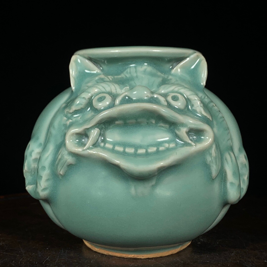 - 蔵友旧蔵出 宋 龍泉窯 粉青釉 獣面罐 稀少珍品 貴重品 古陶瓷品 置物 古賞物 中国古玩 中国古美術品