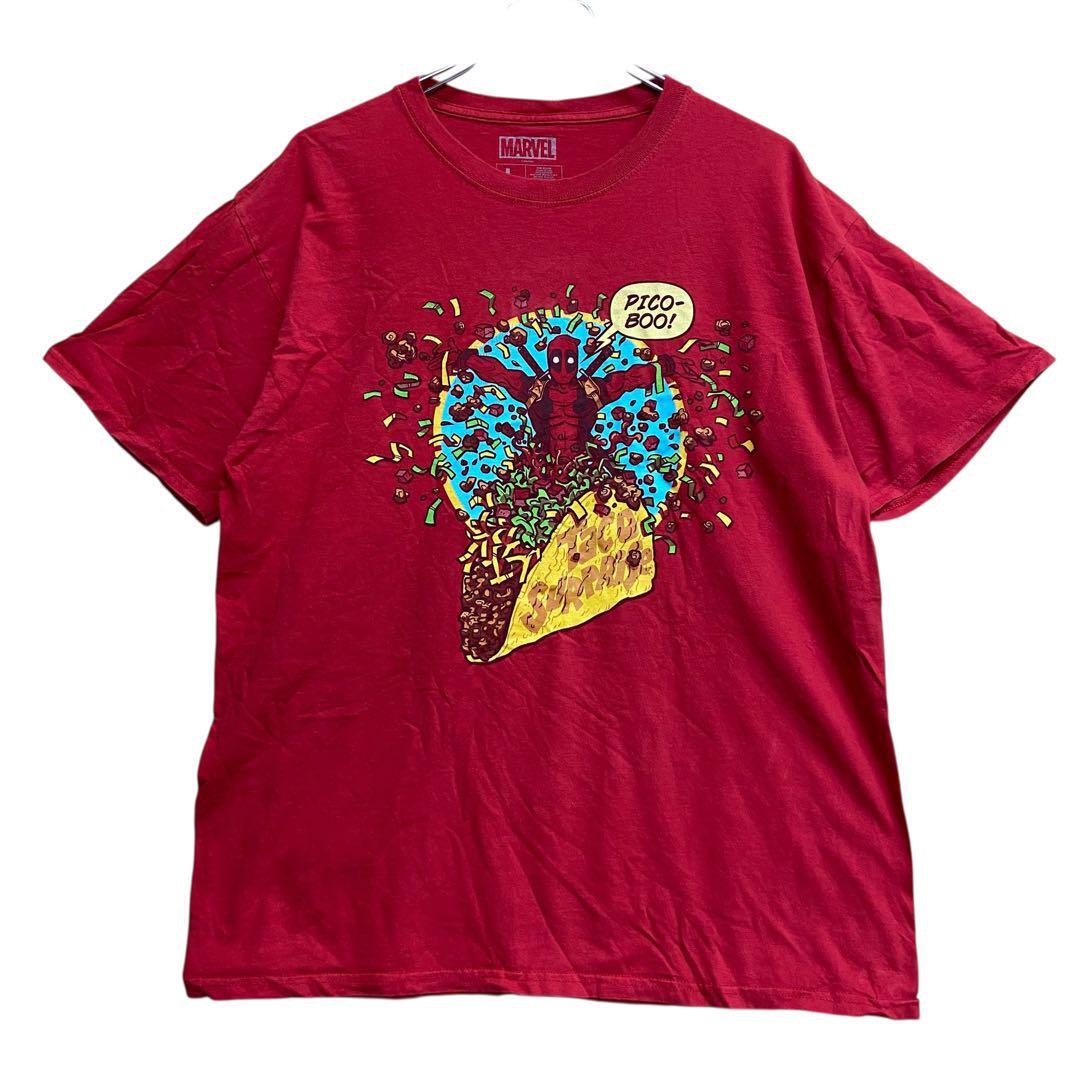 - マーベル メンズTシャツ L 赤 デッドプール コミック風 タコス柄【4240