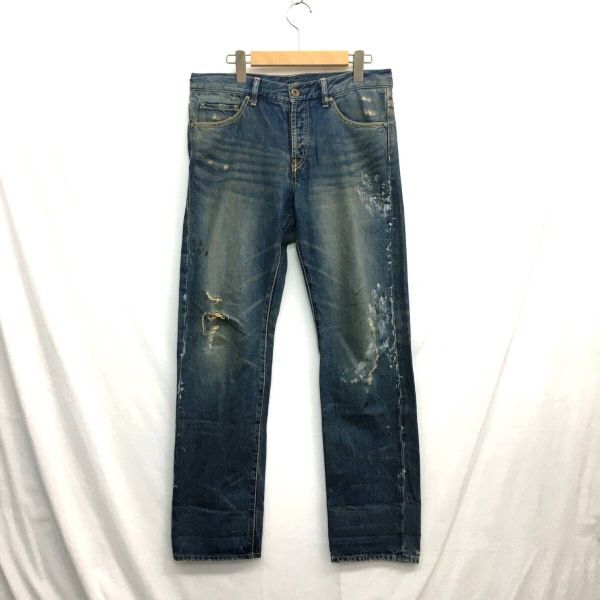 > KZ5283★JOURNAL STANDARD : ヴィンテージ加工 ストレートデニム★38★インディゴブルー ペンキ汚れ加工 ジャーナルスタンダード