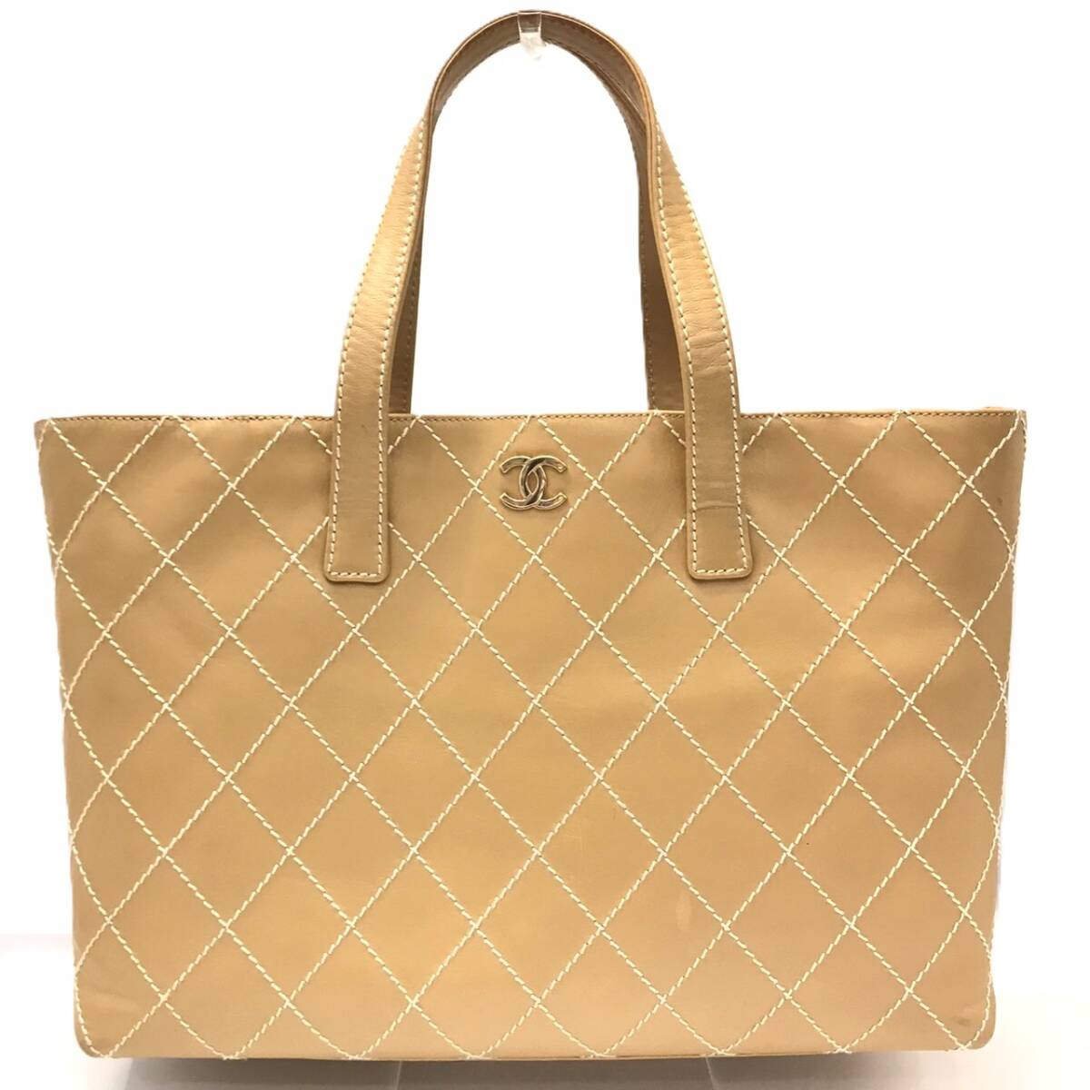 > シャネル トートバッグ ワイルドステッチ ベージュ レザー ココマーク CHANEL ABランク 中古
