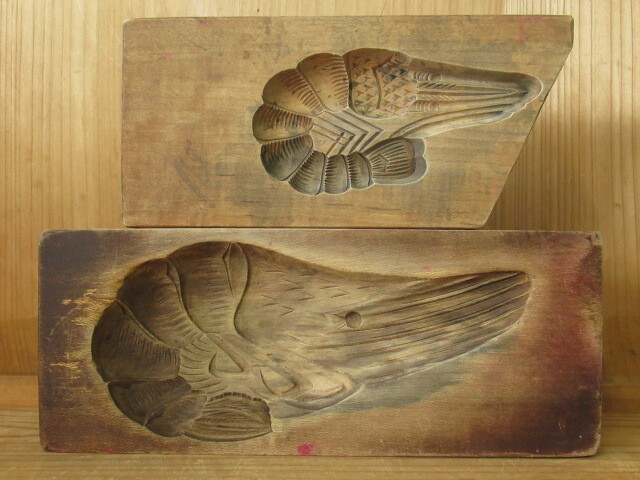 - ◆古い菓子型:32:◆『海老』大・小◆2種2型◆木製菓子型◆手彫◆古道具◆造形美:民芸◆