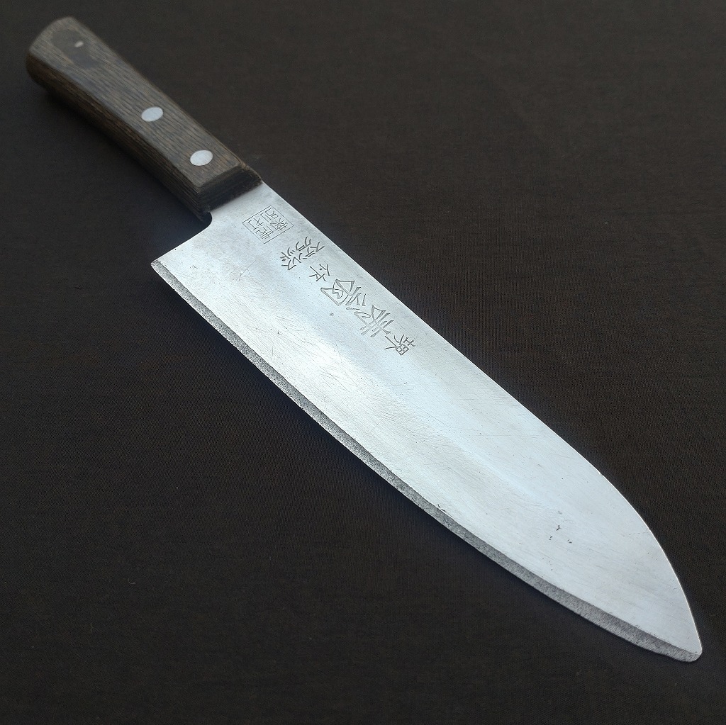 - 三徳包丁 万能包丁 洋包丁 堺寿翁作 ステンレスクラッド 菊虎 別打 刃長約170㎜ 峰厚約2.2㎜ 両刃 庖丁 Japanese Kitchen Knife 【6122】