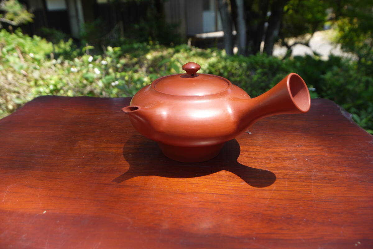 - ★【5Jun03 2青】佐渡 無名異焼 国三窯 急須 朱泥 ※訳有り