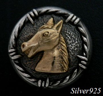 - シルバー925銀のゴールドコート ホース馬フェイス ボタン コンチョ