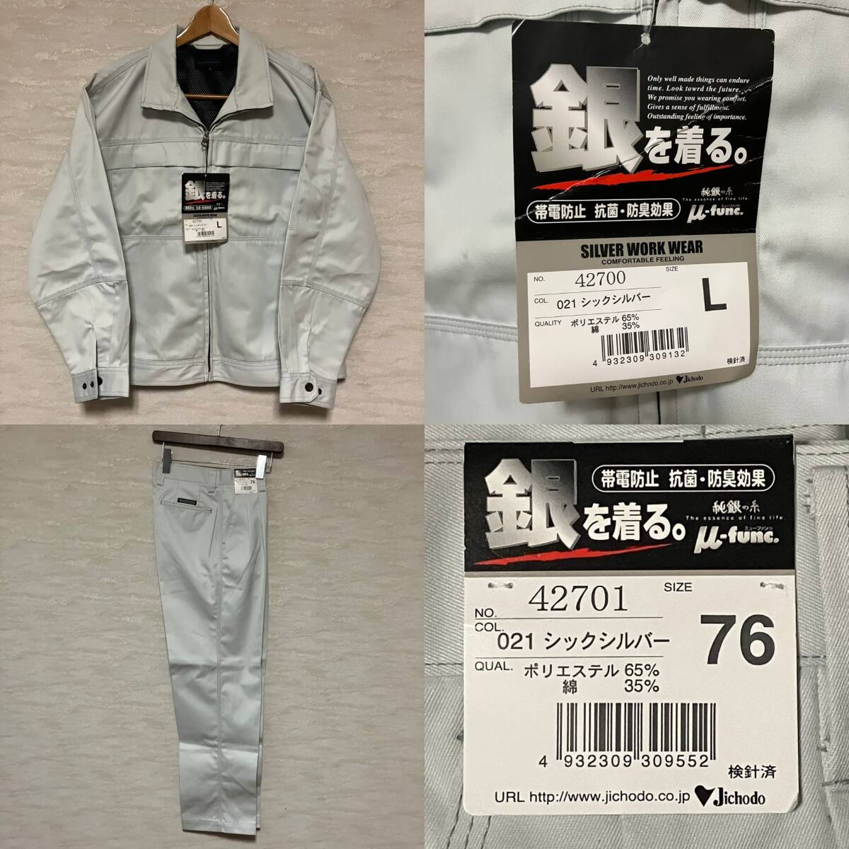- 自重堂 秋冬用・抗菌防臭作業服・ジャケット(L)+パンツ(76)シックシルバー