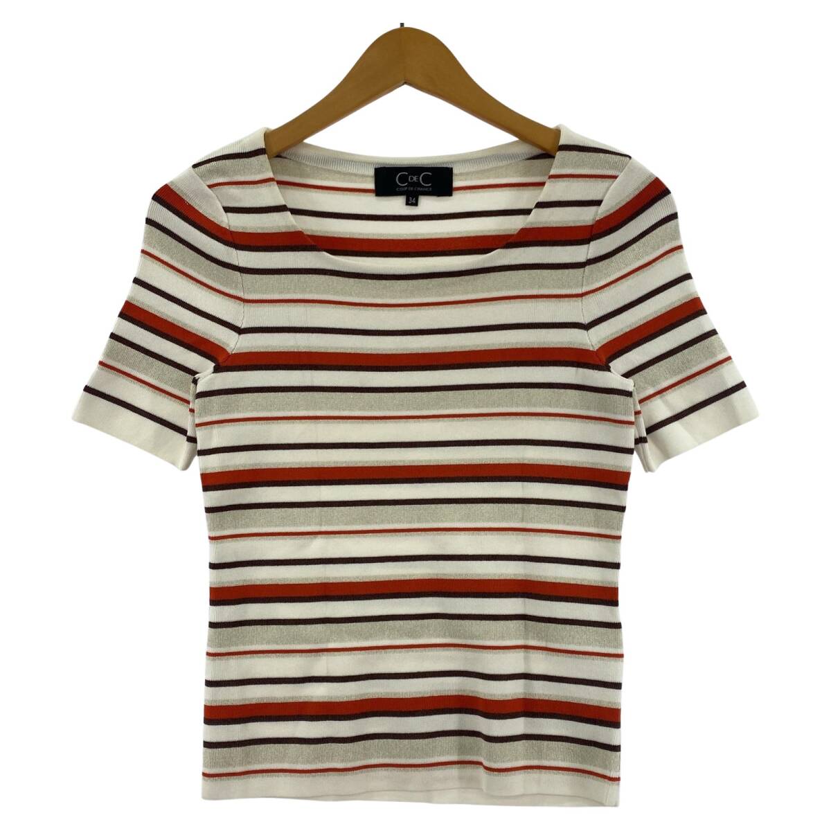 - COUP DE CHANCE クード・シャンス ボーダー 半袖 ニット カットソー size34/ホワイト×ブラウン×オレンジ ゆうパケットOK
