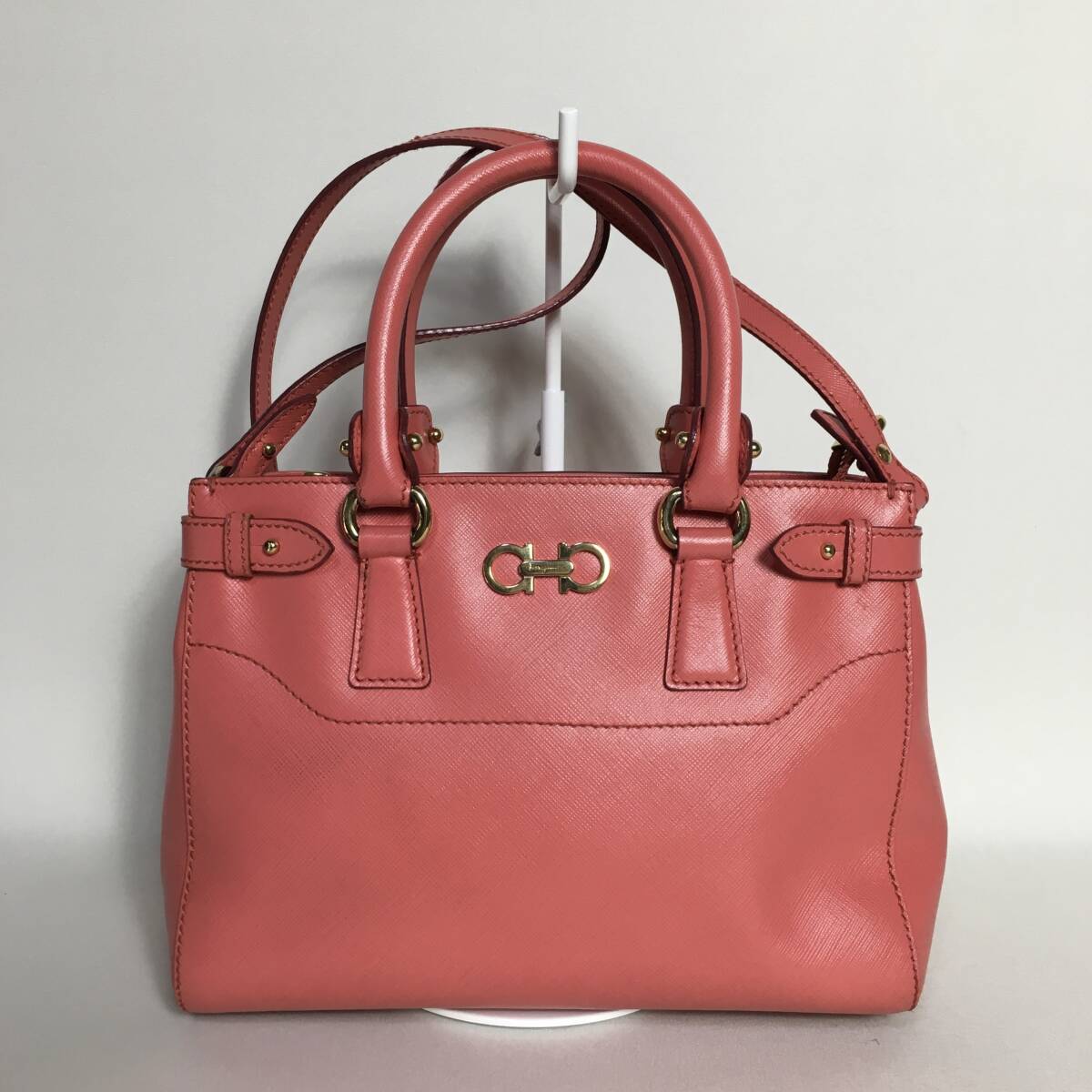 - 75B137|美品|フェラガモ 2WAYバッグ サーモンピンク ガンチーニ
