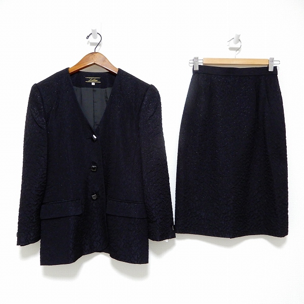- #anc レリアン Leilian スカートスーツ セットアップ ツーピース 7 濃紺 ラメ エンボス加工 レディース [950564]