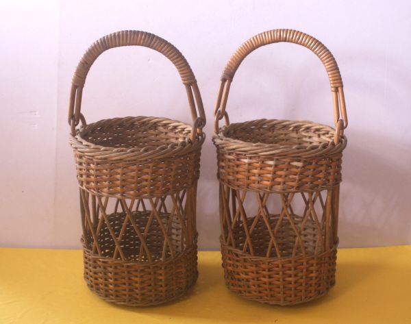 - 天然素材 ラタンの手提げ付き籠 2個セット ラウンド 持ち手つき かご 籐の籠 /26N6.5-61