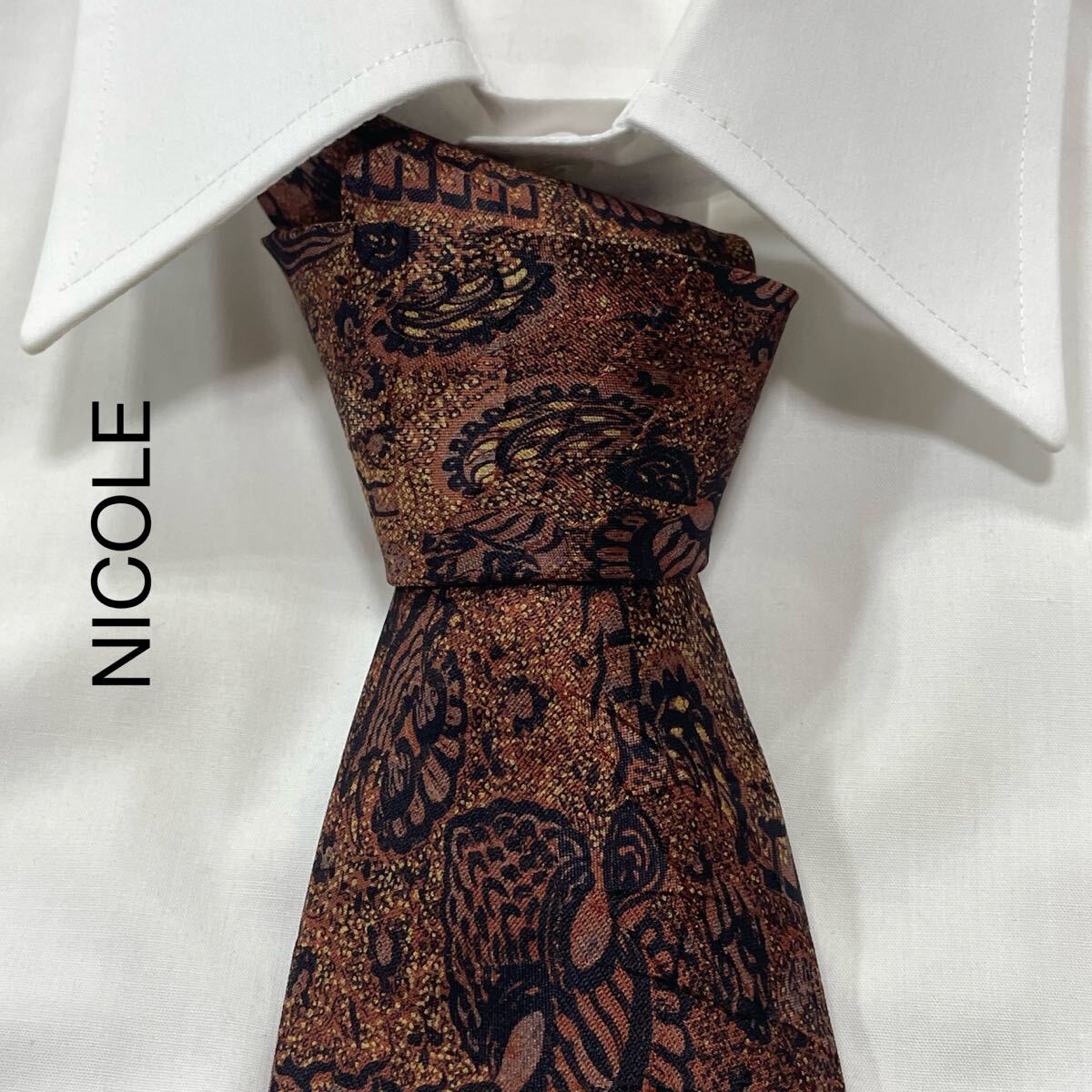 - NICOLE ニコル アート パターン柄 シルク ネクタイ 日本製 レッドブラウン ゴールド ブラック TG2432