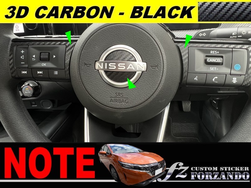 > ノート E13 ステアリングパネルカバー1 3Dカーボン調ブラック 車種別カット済みステッカー専門店fz FE13 オーラ