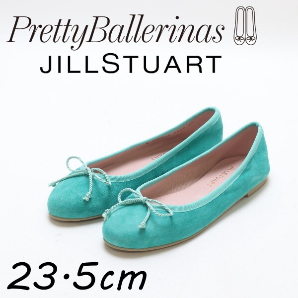 - ◆Pretty Ballerinas プリティバレリーナ × ジルスチュアート スエード リボン フラット パンプス ターコイズブルー 37