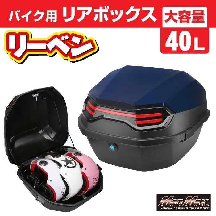 - バイク用品 リアボックス リーベン トップケース 40L ネイビー/軽量 防水 防塵 原付 カブ パニアケース 収納ボックス 通勤【送料800円】