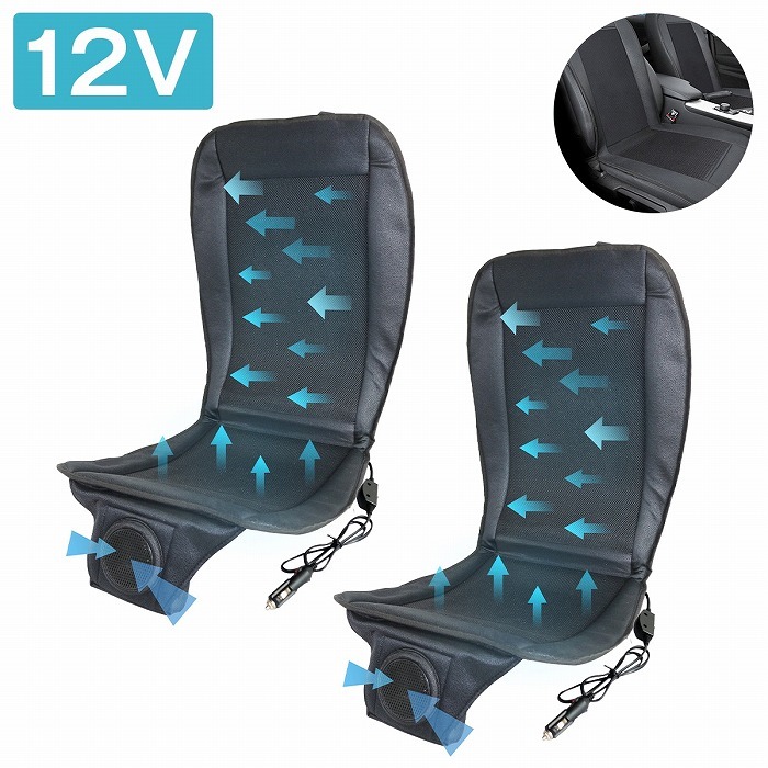 - 【送料無料】『2個セット 12V』クールエアー シート 車 軽自動車 ワゴン 送風 ファン 扇風機 冷風 風量調節 シガーライター 給電 ムレ防止