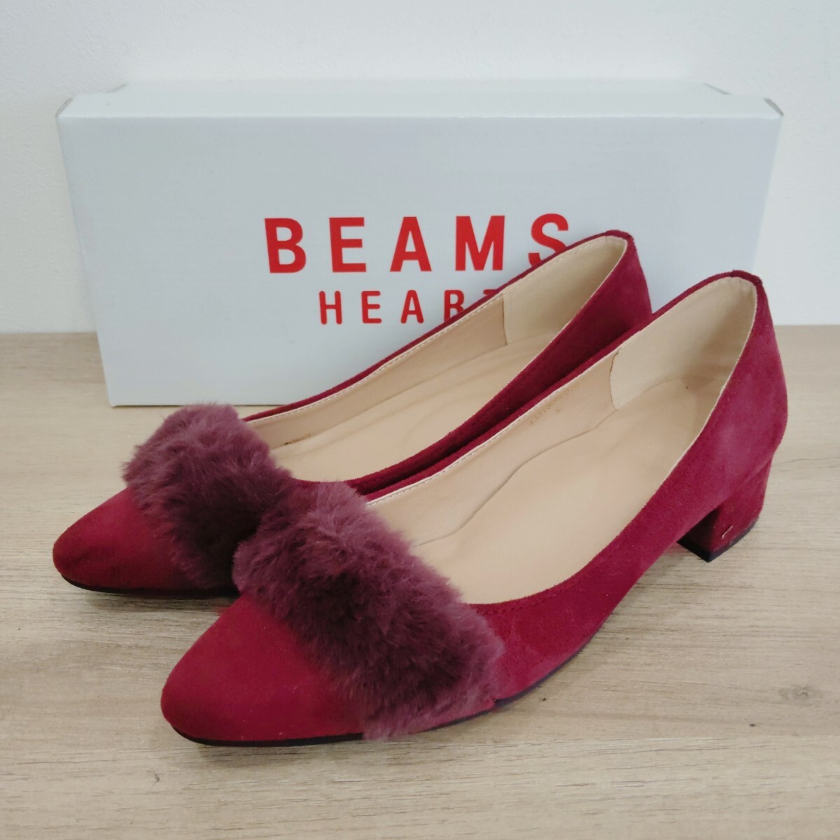 - BEANS HEART ビームス パンプス ヒール 22.0〜23.0cm ファー ワイン色 レディース