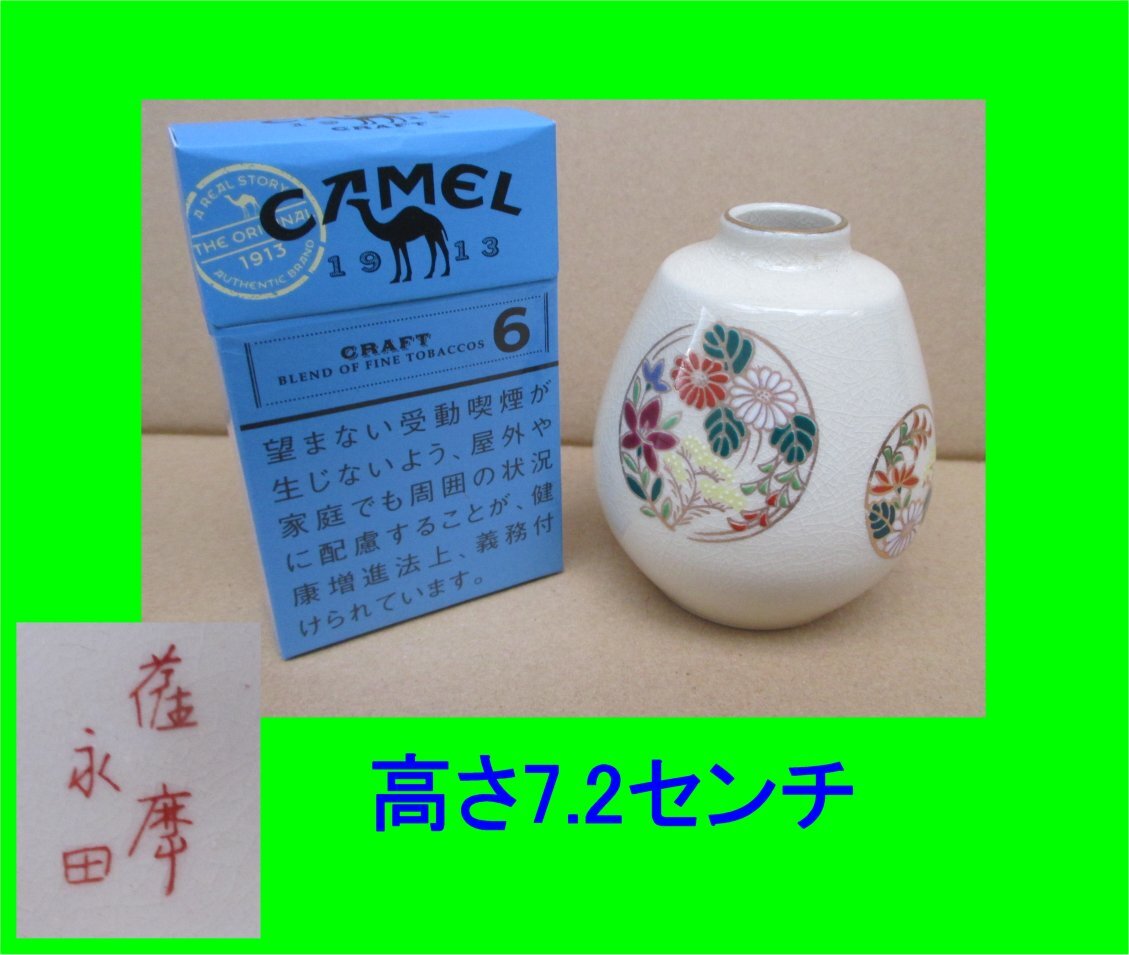 > 854 薩摩 永田 小花瓶 一輪挿し 花器 高さ7.2センチ 中古品に付き使用感アリ、画像にてご確認願います